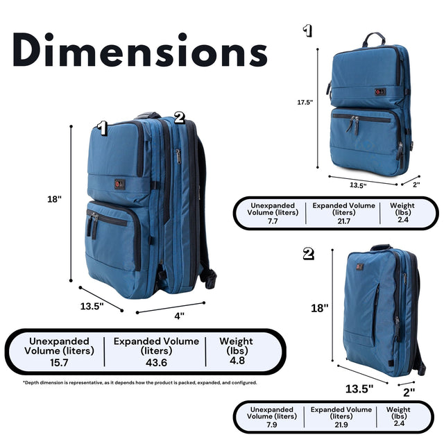 Both bags expand for extra capacity… up to 44 liters when needed!